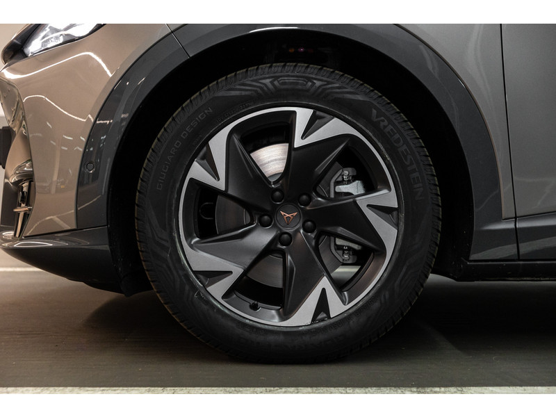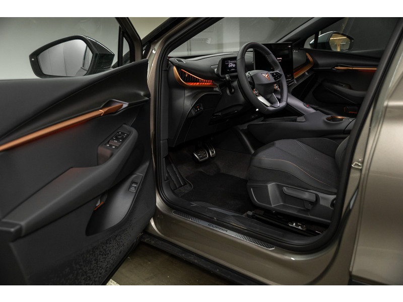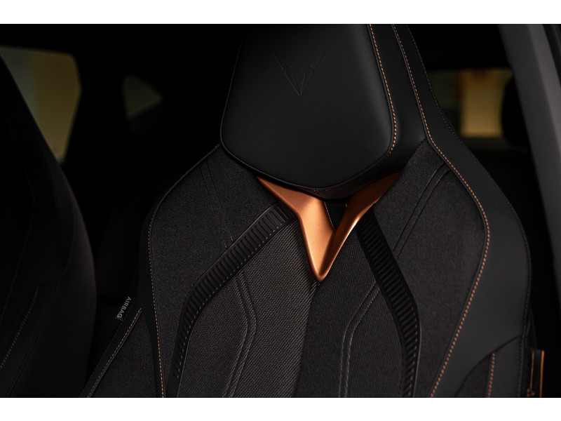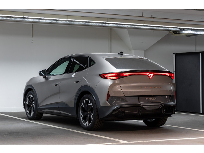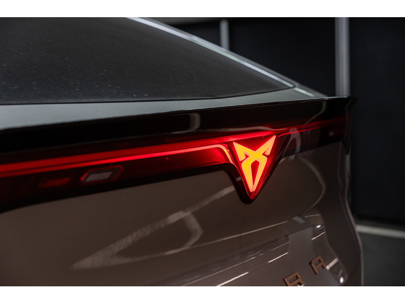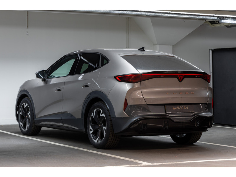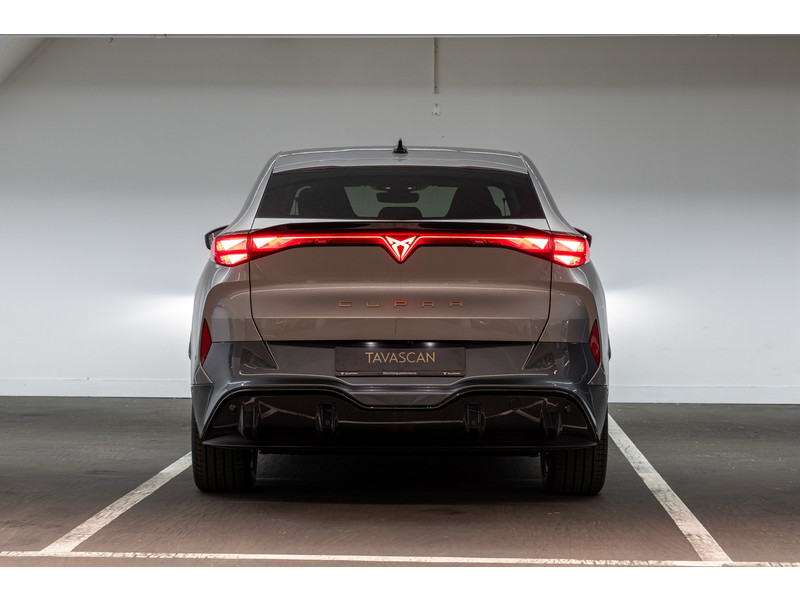 SportonderstelBanden 235/55 R19 voor, 255/50R19 achterBuitenspiegels in Mythos Black/Dolphin Grey (afh.van ext.kleur)CUPRA Letters in CopperDonker getinte ruiten achter (vanaf B-stijl)Koplampverlichting Full LED met LED-dagrijverlichting in signature vormLED-achterlichten, doorlopend over gehele breedteSlotboutenVelgen 'Vulcan', 19 inch lichtmetaalVerlicht CUPRA logo op motorkapWelkomsverlichting "CUPRA" en welkomsceremonie achterlichten
