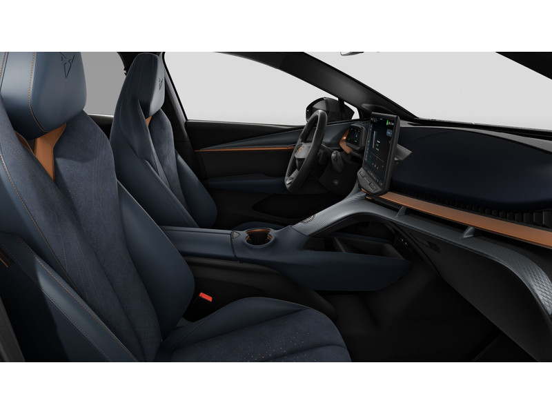 Sportonderstel'VZ'-type aanduiding in Dark ChromeBanden 255/40 R21Buitenspiegels in Mythos Black/Dolphin Grey (afh.van ext.kleur)Donker getinte ruiten achter (vanaf B-stijl)Instaplijst (verlicht) aluminiumLED-achterlichten, doorlopend over gehele breedtePanoramadak (panoramisch glazen dak, kan niet open)SlotboutenVelgen 'Katla Copper', 21 inch lichtmetaalVerlicht CUPRA logo op motorkapWelkomsverlichting "CUPRA" en welkomsceremonie achterlichten