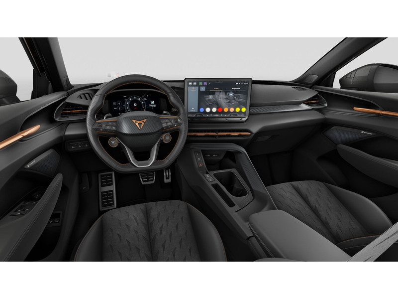 InterieurAutomatisch dimmende binnenspiegelBestuurdersstoel en bijrijdersstoel in hoogte verstelbaarDakhemel uitgevoerd in zwartFrames om luchtuitstroomroosters in Copper en Dark AluminiumKuipstoelen vóór met geïntegreerde hoofdsteunLendesteunverstelling voorstoelen handmatigMattenset CUPRA, uitgevoerd in blauw (Deep Ocean)Moon Light (suede-look)Multifunctioneel verwarmbaar stuurwiel met start–en CUPRA–knop en schakelpaddelsSportpedalen, uitgevoerd in aluminiumSupersport stuurwiel in CUPRA design