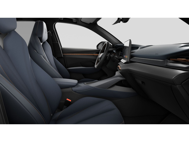 InterieurAutomatisch dimmende binnenspiegelBekleding stof ''Deep Ocean''Bestuurdersstoel en bijrijdersstoel in hoogte verstelbaarDakhemel uitgevoerd in zwartFrames om luchtuitstroomroosters in Copper en Dark AluminiumKuipstoelen vóór met geïntegreerde hoofdsteunLendesteunverstelling voorstoelen handmatigMattenset CUPRA, uitgevoerd in blauw (Deep Ocean)Multifunctioneel verwarmbaar stuurwiel met start–en CUPRA–knop en schakelpaddelsSportpedalen, uitgevoerd in aluminiumSupersport stuurwiel in CUPRA design