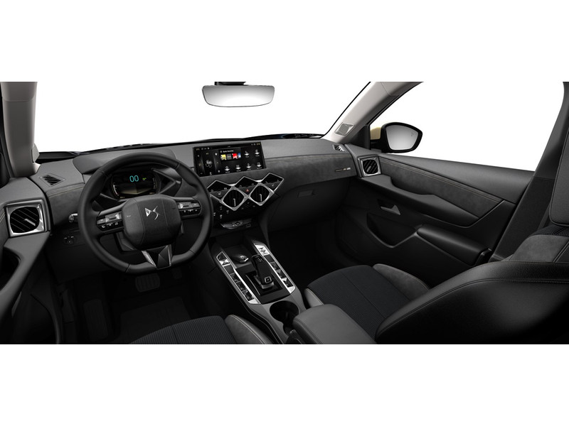 InterieurAfwerking dashboard Black Alcantara®Centrale armsteun vóórCentrale bedieningsknoppen en luchtroosters uitgevoerd in glanzend zwartDeurpanelen met bekleding in TEP BasaltDS PERFORMANCE Line badge op dashboardGeen middenarmsteun voorGlanzend zwarte versnellingspookknopGuilloche afwerking middenconsole ‘Clous de Paris’ in mat zwartIn hoogte en diepte verstelbaar stuurwielIn hoogte verstelbare bestuurders- en passagiersstoelOmlijsting centrale bedieningsknoppen en luchtroosters uitgevoerd in chroomStoelbekleding Black Alcantara® met stof MithyStoelbekleding Peruzzi Silicium met lichte dakhemel