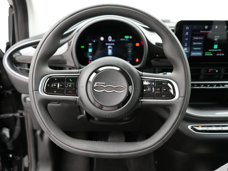 Elektrisch rijden is ontspannen rijden. Achter het stuur van deze Fiat 500 kun je je in alle rust concentreren op de weg. We hebben het hier over een auto uit 2023, hij heeft 33504 kilometer op de teller staan. De batterijtechniek heeft de afgelopen jaren enorme vooruitgang geboekt, zodat jij met deze auto op een volle acculading echt ver kunt komen. En als je de auto 's avonds aan de lader koppelt, is hij de volgende dag weer helemaal vol. De sportstoelen zorgen ervoor dat je goed en comfortabel zit, ook als het gas erop gaat. Natuurlijk behoren 18 inch lichtmetalen velgen, Full LED koplampen, sportonderstel, sportinterieur, donker getint glas achter en LED-achterlichten ook tot de uitrusting van deze complete auto.