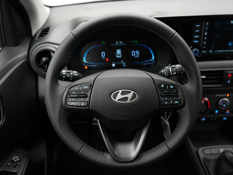 De nieuwste veiligheidssystemen komen in deze Hyundai i10 samen. Het Lane-keeping systeem registreert permanent of je binnen de lijnen van de rijstrook blijft; dwaal je onbedoeld af, dan waarschuwt het systeem en corrigeert de koers. Forward collision warning waarschuwt bij een dreigende aanrijding en vermindert de gevolgen van een ongeval. Bovenop deze veiligheidsfeatures heeft deze Hyundai bovendien hill hold functie, autonoom remsysteem en bandenspanningcontrolesysteem.