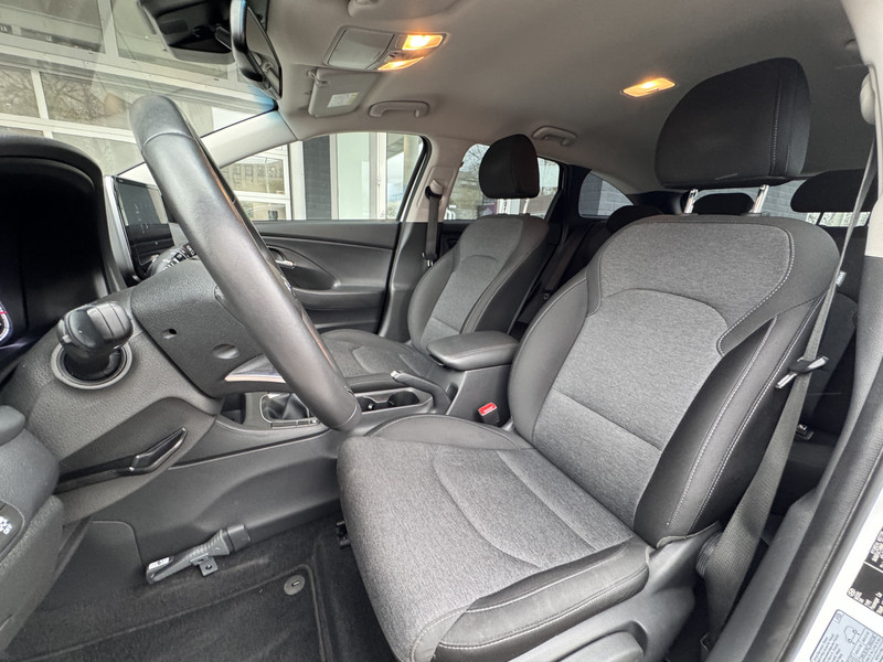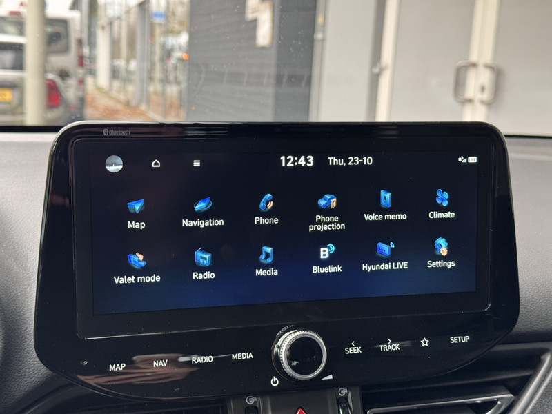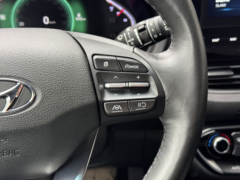Met een gerust hart achteruitrijden? Dat kan, dankzij de achteruitrijcamera. Functies activeren en storingen opsporen? Bij deze auto gaat het eenvoudig via je smartphone. Overal en altijd. Deze Hyundai is voorzien van spraakbediening voor het full map navigatiesysteem en voor het audiosysteem met DAB-ontvangst. Maar je kunt ook de knoppen op het stuur gebruiken. Geen gehannes met snoertjes en kabels, je laadt je smartphone automatisch op met de draadloze telefoonlader. Tot de standaard uitrusting van deze auto hoort ook automatische airconditioning. Ook regensensor, cruise control, keyless entry, automatisch dimmende binnenspiegel, lederen stuur en bagage afdekhoes horen tot de voorzieningen op deze auto.