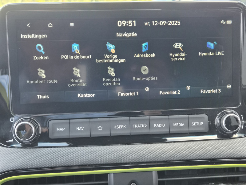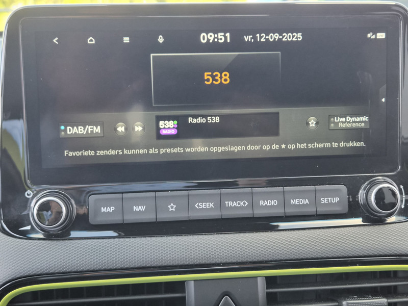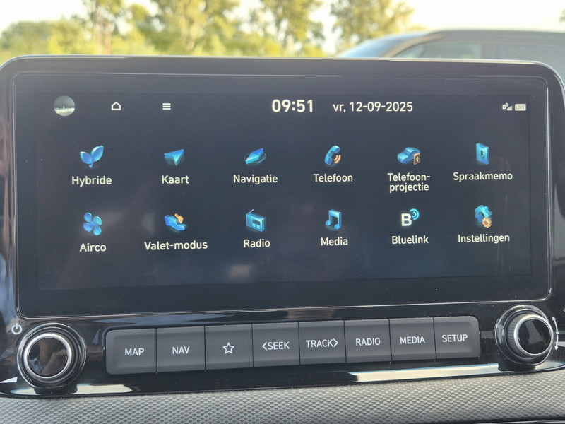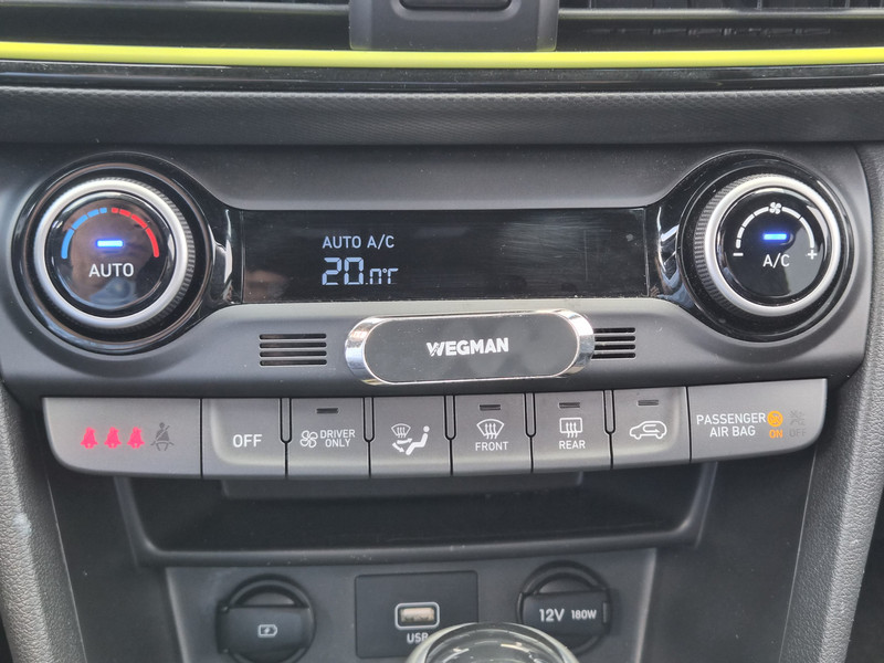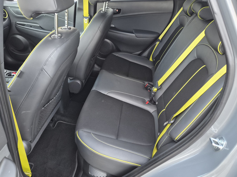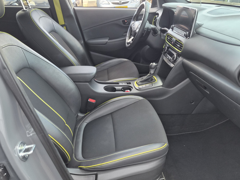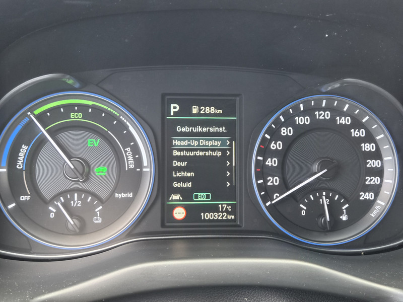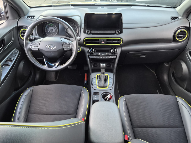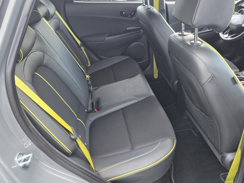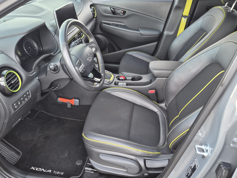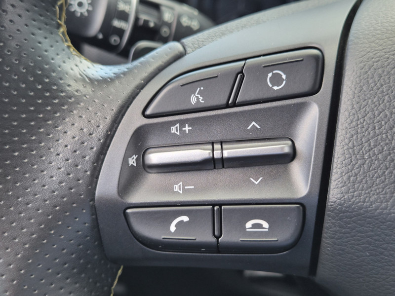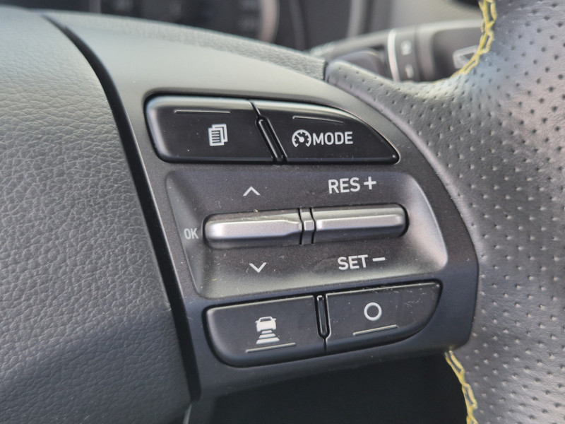 De Hyundai Kona is ook voorzien van ADAS. Deze Advanced Driver Assistence Systems fungeren als extra ogen en oren: ze houden voor jou de weg in de gaten en grijpen in wanneer dat nodig is. Je hoeft onderweg je hoofd nooit te draaien of je blik te verplaatsen om dashboard-info af te lezen. De head-up display projecteert alles op de voorruit. Je kunt rijden als een jachtpiloot. Het Lane-keeping systeem is altijd alert. Over de rijstrooklijntjes gaan is er niet bij. Veel aanrijdingen bestaan uit kop-staartbotsingen. De forward collision warning reduceert dat risico aanzienlijk. Bovenop deze veiligheidsfeatures heeft deze Hyundai bovendien dodehoekdetectie, hill hold functie, vermoeidheidsherkenning, autonoom remsysteem en bandenspanningcontrolesysteem.