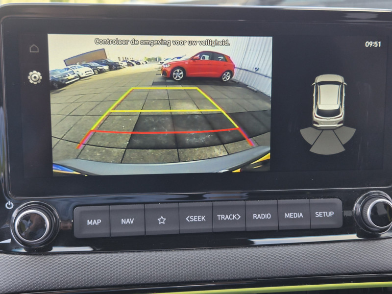 Ook achter de auto geen verrassingen bij het inparkeren. Daarvoor zorgt de achteruitrijcamera. Met adaptive cruise control houdt deze auto automatisch afstand tot jouw voorligger. In het zeldzame geval van een storing weet je nog eerder dan de monteur wat er mankeert. Je smartphone met remote services geeft direct inzicht. De hoorbare sensatie van het high performance audiosysteem is een ervaring op zich. Automatische airconditioning regelt volautomatisch de temperatuur. Jij kiest de gewenste temperatuur en het systeem doet de rest. Ook is de Hyundai uitgerust met: dashboard met spraakbediening, full map navigatiesysteem, schakelpaddles aan het stuur, DAB ontvangst, regensensor en keyless entry.