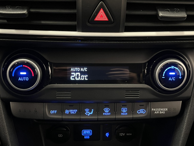 Een onopvallend paaltje of een overstekend kind achter de auto brengt risico's met zich mee. Gelukkig laat de achteruitrijcamera feilloos zien of alles veilig is. Met adaptive cruise control houdt de auto zelfstandig afstand tot jouw voorligger. Een veiligheidsverhogende optie waarmee je comfortabel onderweg bent. Sublaag en tophoog... en alles daartussenin! Het high performance audiosysteem kan elke frequentie moeiteloos aan. Kabels niet nodig, de draadloze telefoonlader laadt je smartphone al rijdend bij. Om de veiligheid onderweg te verhogen, heeft deze Hyundai zowel een automatisch inschakelbare verlichting als een regensensor aan boord, zodat hij zelf de verlichting en de ruitenwissers kan inschakelen. De uitrusting van deze auto is met dashboard met spraakbediening, full map navigatiesysteem, DAB ontvangst, keyless entry, airconditioning en automatisch dimmende binnenspiegel behoorlijk compleet.