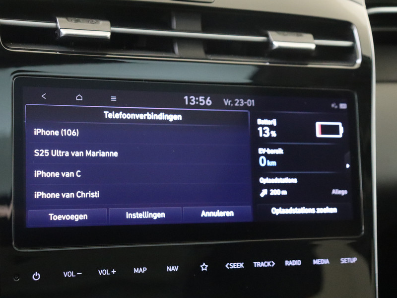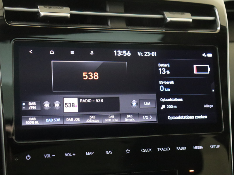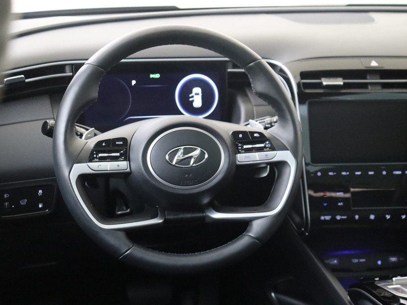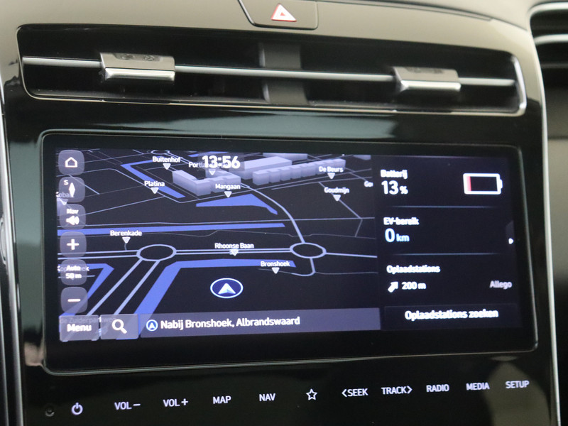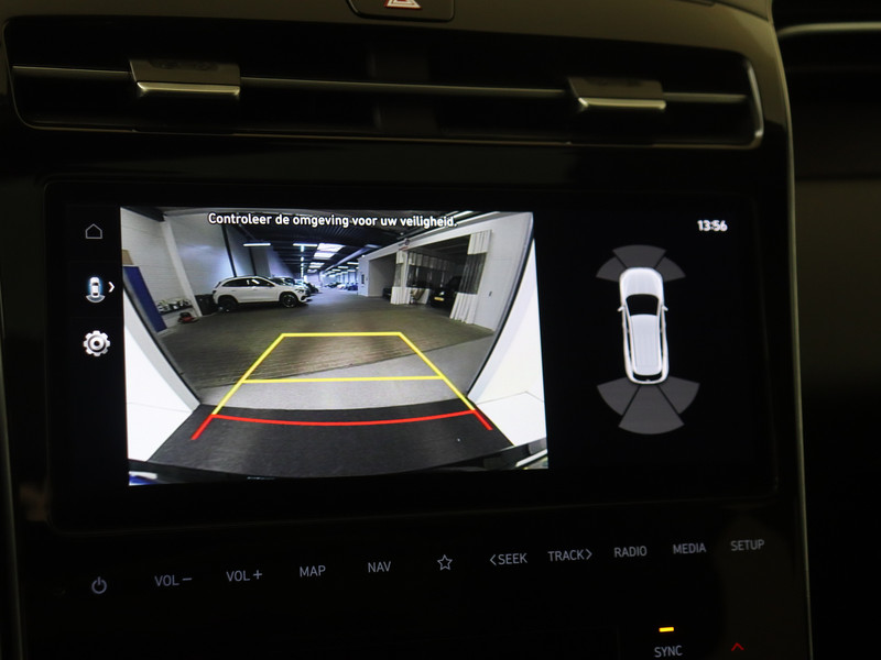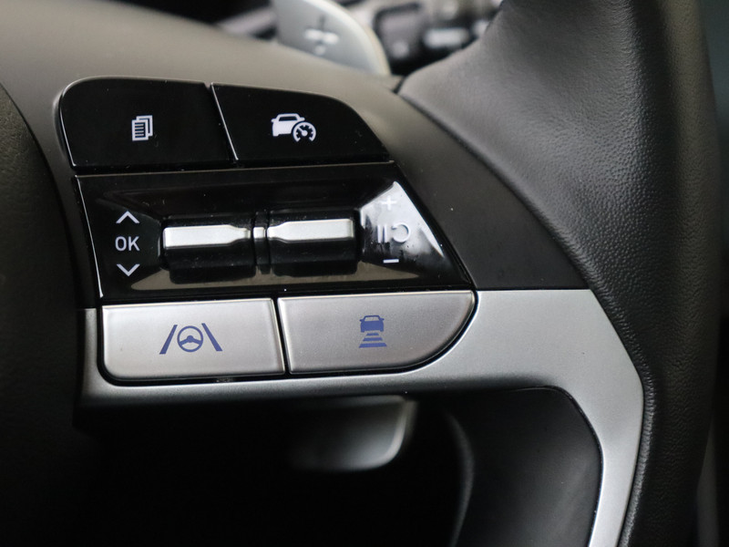 Je leest alle belangrijke functies helder af dankzij het digitale dashboard. Kom maar, kom maar, kom maar... ho! Prettig hoor, zo'n achteruitrijcamera. Als je de adaptive cruise control inschakelt, regelt de auto zelf de snelheid en de afstand tot de auto voor je. Loopt het verkeer onderweg vast, schakel dan de file assistent in en laat het systeem zorgen voor de juiste afstand bij stilstaan en rijden. Mocht zich een probleem voordoen, dan krijg je via remote services op je smartphone te zien wat er precies aan de hand is, waar je ook bent. De uitrusting van deze Hyundai is met dashboard met spraakbediening, premium audiosysteem, full map navigatiesysteem, kruisend verkeer detectie, automatische airconditioning en schakelpaddles aan het stuur behoorlijk compleet.