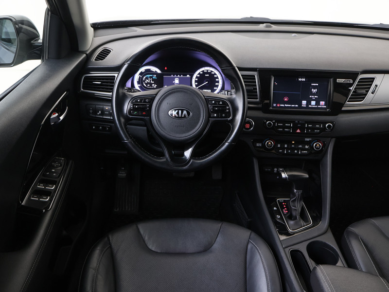 De nieuwste veiligheidssystemen komen in deze Kia Niro samen. Ongemerkt buiten de rijstrook raken? Nee hoor, het Lane-keeping systeem waarschuwt en corrigeert. Mocht zich een gevaarlijke situatie voordoen, dan geeft de Brake Assist extra remkracht en verkort de remweg. Ook helpen het hill hold functie en bandenspanningcontrolesysteem, jouw rit tot een veilige rit te maken.