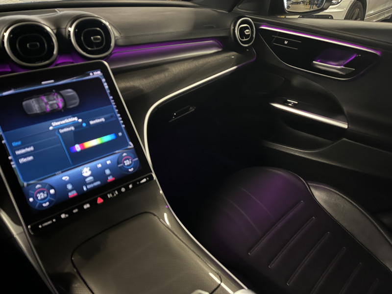 De nieuwste technieken zijn samengevoegd in een smaakvol ontworpen auto en maken van deze Mercedes-Benz C-klasse Estate een uitblinker in veiligheid en comfort. Ben je bestand tegen een beetje bekijks? Dan zal de AMG Line Exterieur je zeker aanspreken. Een krachtige motor geeft deze auto zijn sportieve prestaties. Doe maar luxe! Neem plaats in de verwarmbare voorstoelen en voel de weldaad in koude dagen. Pittig rijden wordt nog comfortabeler dankzij de fraaie sportstoelen. Daglicht valt vrij binnen door het elektrisch bediende glazen panoramadak. De achterklep opent automatisch met een druk op de knop. Handig als je met volle handen staat. De uitmonstering van deze auto wordt gecompleteerd door onder meer 18 inch lichtmetalen velgen, Full LED koplampen, AMG Line Exterieur, sportonderstel, warmtewerend glas en in delen neerklapbare achterbank.