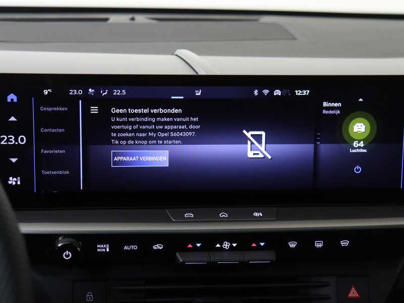 Slim, efficiënt, veilig en goed geïnformeerd rijden? Het digitale dashboard vertelt je alles wat je wilt weten. Met de 360 graden camera kun je elk obstakel of gevaar rondom de auto detecteren, wat je veiligheid verhoogt. Met adaptive cruise control houdt deze auto automatisch afstand tot jouw voorligger. Spraaksturing maakt het eenvoudiger en veiliger om deze auto onderweg te bedienen. Deze Opel Grandland is 'connected'. Belangrijke functies worden permanent gemeten en zijn uit te lezen via een speciale app, ook op afstand. Je bent in deze Opel ook voorzien van full map navigatiesysteem, electronic climate control, schakelpaddles aan het stuur, draadloos opladen, DAB ontvangst en regensensor.