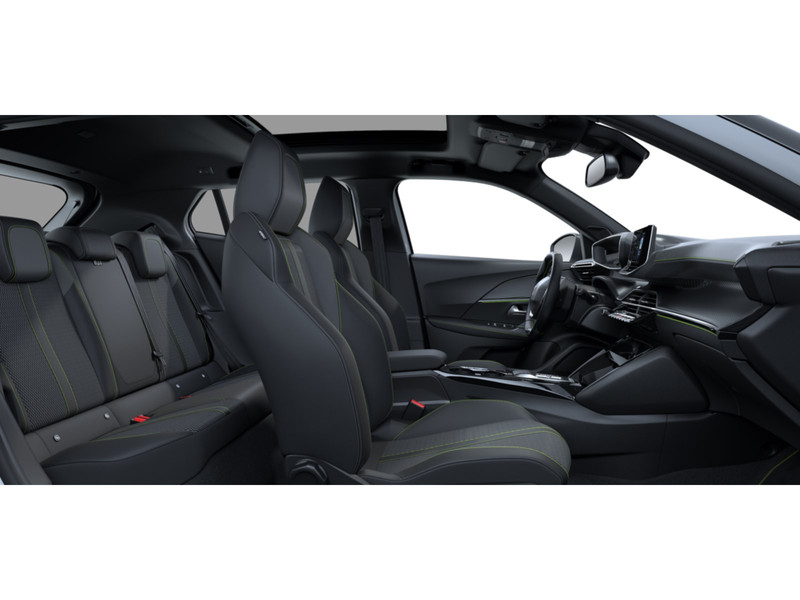 InterieurPeugeot i-Cockpit® met 3D digitaal instrumentenpaneelAlcantara® Executive interiorAluminium instaplijsten voorzijde met ‘PEUGEOT’ opschriftAluminium pedalenArmsteunen op portieren afgewerkt met kunstleder en stiksel "Adamite"Dashboard in zacht materiaal met carboneffect afgewerkt, glanzend zwarte inleg en chroomeffectDeurpanelen vóór met carboneffect afgewerktGeperforeerd lederen sportstuurwiel afgewerkt met groen stiksel en GT-logoGT vloermatten vóór en achter afgewerkt met stiksel "Adamite"Hoge middenconsole met geïntegreerde middenarmsteunIn hoogte verstelbare hoofdsteunen vóór (x2) en achterin (x3)InterieurverlichtingInterieurverlichting vóór LED, 2 leeslampjes achterNeerklapbare achterbank (1/3 - 2/3)Sfeerverlichting interieur in 8 kleuren instelbaarStof/kunstleder Belomka afgewerkt met groene stiksels “Adamite"Verlichting in bagageruimte