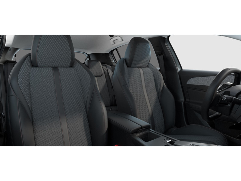 InterieurBekleding Stof/kunstleder TREMEZZO, afgewerkt met stiksels in QuartzBekleding stof RENZO, afgewerkt met stiksels in oranje SunriseBestuurderstoel met aanpasbare lendensteunCompact, met leder bekleed stuurwiel met geïntegreerde multimediabedieningDashboard met afwerking in korrelstructuur en grijze sierlijstKunstleder armsteunen afgewerkt met grijs stikselPortierbekleding in grijze gemêleerde stof, en matzwarte handgrepenPortierbekleding met afwerking in korrelstructuur en matzwarte handgrepenStof bekleding armsteunen in zwartVier handgrepen boven de portierenZacht dashboard bekleed met grijze gemêleerde stof, grijze stoffen decoratie en grijze sierlijst