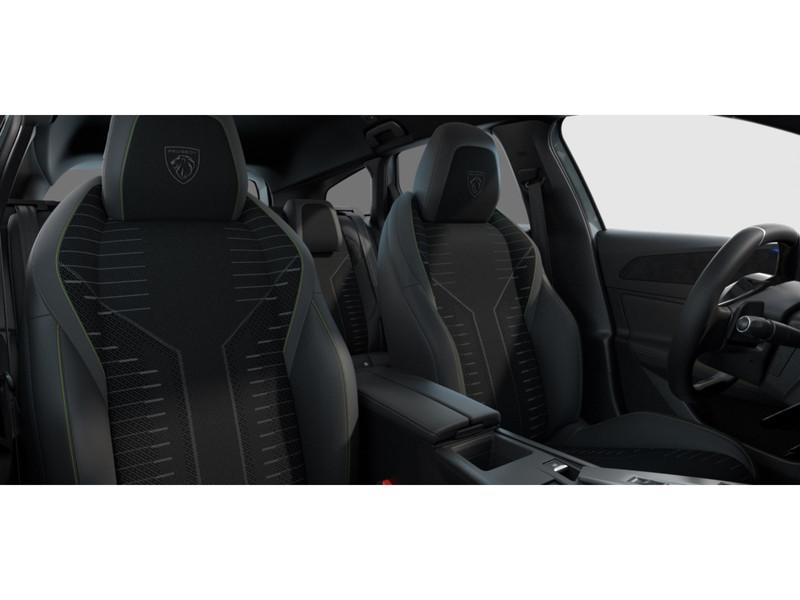 InterieurBekleding Stof/kunstleder TREMEZZO, afgewerkt met stiksels in QuartzBekleding Stof/kunstleder UZILA afgewerkt met stiksels in groen AdamiteBekleding stof RENZO, afgewerkt met stiksels in oranje SunriseBestuurderstoel met aanpasbare lendensteunDashboard met afwerking in korrelstructuur en grijze sierlijstGT-mattenset vóór en achter met stiksels in groen AdamiteIndirecte 'dag-en-nacht' -sfeerverlichting op het dashboard en in de bekleding van de vóórportieren, aanpasbaar in acht kleurenKunstleder armsteunen afgewerkt met grijs stikselKunstleder armsteunen afgewerkt met stiksels in groen Adamite en grijs TramontanePortierbekleding in grijze gemêleerde stof, en matzwarte handgrepenPortierbekleding met afwerking in korrelstructuur en matzwarte handgrepenPortierbekleding met Alcantara decoratie, kunstleer afgewerkte handgrepen met stiksels in groen Adamite en grijs TramontaneRoestvrijstalen dorpelbekleding voorportieren met ‘PEUGEOT’ opschriftStof bekleding armsteunen in zwartVier handgrepen boven de portierenZacht dashboard bekleed met grijze gemêleerde stof, grijze stoffen decoratie en grijze sierlijstZacht dashboard met Alcantara decoratie, chromen sierlijst en stiksels in groen Adamite