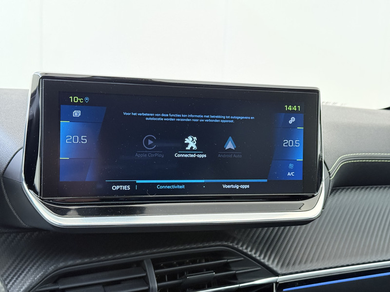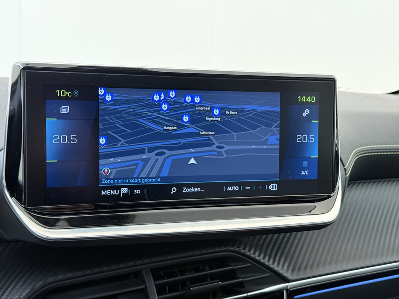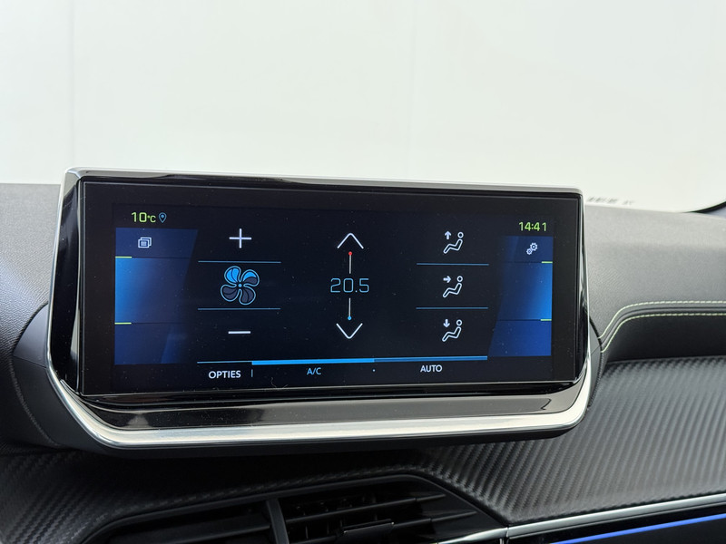 De nieuwste veiligheidssystemen komen in deze Peugeot e-208 samen. Onderweg fungeert de verkeersbord-detectie als het ware als jouw bijrijder en attendeert je op de verkeersborden langs de weg. Met het Lane-keeping systeem ga je nooit onbedoeld over de streep. Veilig inhalen wordt bevorderd door de actieve dodehoekdetectie. In deze Peugeot vinden we verder een forward collision warning system, vermoeidheidsherkenning, autonoom remsysteem en bandenspanningcontrolesysteem.