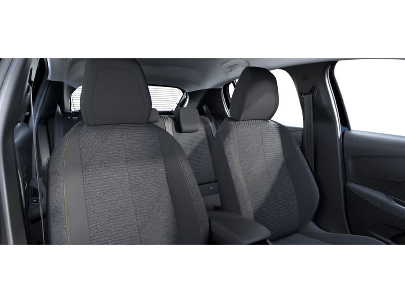 InterieurArmsteunen portierpanelen vóór en achter in grijs BaladinBekleding stof RENZO, afgewerkt met stiksels in oranje SunriseCompact, met leder bekleed stuurwiel met geïntegreerde multimediabedieningDashboard in zacht materiaal met carbon TPE afwerkingGenerfde portierpanelen achterHoge middenconsole met geïntegreerde middenarmsteunPortierpanelen vóór met decor in carbon en glanzend zwarte stripStof RenzoTwee additionele USB-aansluitingen: één USB-A en één USB-C (alléén opladen) op de middenconsole achterinVóórstoelen met handmatige verstelling voor hoogte, lengte en rugleuningshoek.