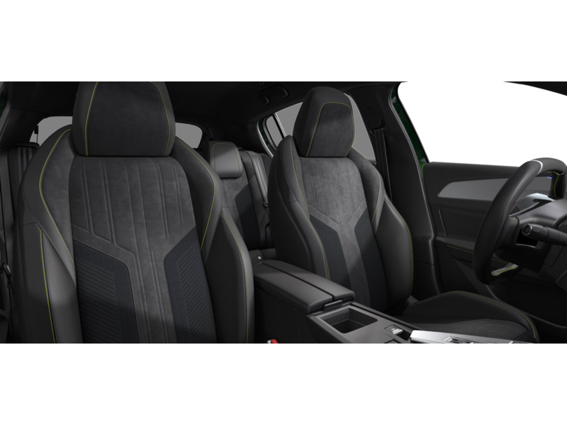 InterieurBekleding Alcantara/kunstlederNew Peugeot i-Cockpit®: configureerbaar digitaal head-up instrumentenpaneel, 10" capacitief touchscreen en compact multifuctioneel stuurwielAluminium instaplijstenChroomomranding van de ruitschakelaarsConfigureerbaar 3D-instrumentenpaneelDashboard, middenconsole en stuurwiel afgewerkt met groen stikselLED Ambient Lighting - sfeerverlichting van dashboard en deurpanelen voorin met 8 verschillende kleurenMattenset GT met groen stikselSierdelen op het dashboard en de deurpanelen afgewerkt in "Gris Stene"Sierdelen op het dashboard en de deurpanelen afgewerkt in stofSportstoelen in stof/kunstleder FALGO MistralSportstuurwiel type GT