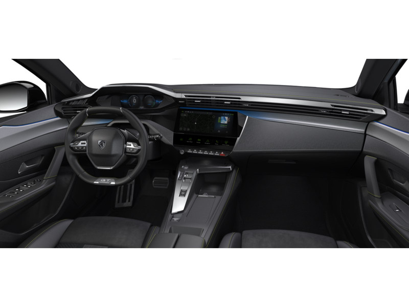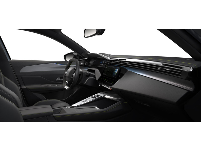 InterieurBekleding Alcantara/kunstlederNew Peugeot i-Cockpit®: configureerbaar digitaal head-up instrumentenpaneel, 10" capacitief touchscreen en compact multifuctioneel stuurwielAluminium instaplijstenChroomomranding van de ruitschakelaarsConfigureerbaar 3D-instrumentenpaneelDashboard, middenconsole en stuurwiel afgewerkt met groen stikselLED Ambient Lighting - sfeerverlichting van dashboard en deurpanelen voorin met 8 verschillende kleurenMattenset GT met groen stikselSierdelen op het dashboard en de deurpanelen afgewerkt in "Gris Stene"Sierdelen op het dashboard en de deurpanelen afgewerkt in stofSportstoelen in stof/kunstleder FALGO MistralSportstuurwiel type GT