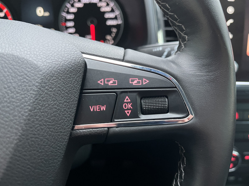 Kom maar, kom maar, kom maar... ho! Prettig hoor, zo'n achteruitrijcamera. Nooit meer te warm of te koud. De automatische airconditioning zorgt altijd voor de temperatuur die jij kiest. De auto neemt je werk uit handen doordat hij zelf veel in de gaten houdt. Een regensensor en een automatisch inschakelbare verlichting nemen waar wanneer de ruitenwissers en het licht aan moeten. Natuurlijk is er ook cruise control aan boord, waarmee je meer ontspannen en zuiniger rijdt. Geen sleutel of afstandsbediening meer nodig om deze SEAT Ateca te ontgrendelen. De sloten gaan vanzelf open als u dichtbij komt, via de sensor van de keyless entry. De SEAT is standaard voorzien van: dashboard met spraakbediening, full map navigatiesysteem, DAB ontvangst, automatisch dimmende binnenspiegel, lederen stuur en centrale deurvergrendeling met afstandsbediening.