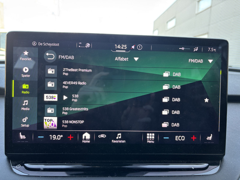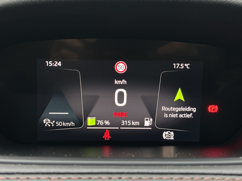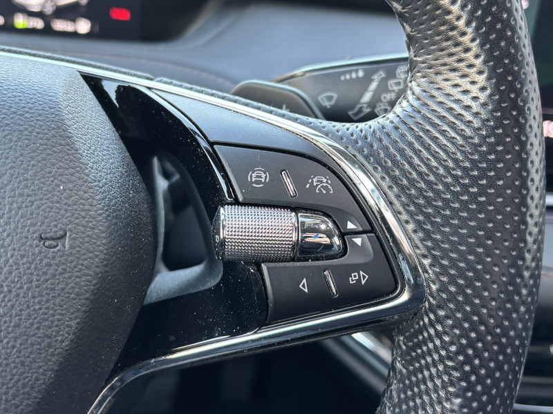 Je leest alle belangrijke functies helder af dankzij het digitale dashboard. Niets achter deze auto blijft verborgen door de achteruitrijcamera. Een veilig gevoel! Met adaptive cruise control houdt de auto zelfstandig afstand tot jouw voorligger. Een veiligheidsverhogende optie waarmee je comfortabel onderweg bent. Handig en veilig: Connected Services. Alle vitale functies en data van de auto check je via de app op je smartphone. Laat je onderweg niet afleiden, de bediening van het audio-installatiesysteem en ook het navigatiesysteem gaat met knoppen op het stuur en met spraak. Natuurlijk is de audio-installatie voorzien van DAB-ontvangst. De uitrusting van deze ŠKODA is met electronic climate control, schakelpaddles aan het stuur, draadloos opladen, regensensor, keyless entry en automatisch dimmende binnenspiegel behoorlijk compleet.