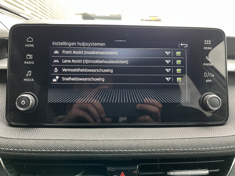 Deze ŠKODA biedt je niet alleen comfort en rijplezier, maar ook veiligheid. Actieve veiligheidssystemen houden voor jou de weg in de gaten en reageren op onvoorziene situaties voordat jij dat kunt. De actuele snelheidslimiet, een inhaalverbod en andere verkeersborden. De verkeersborddetectie ondersteunt jou tijdens elke rit. Mooi binnen de lijnen van de rijstrook blijven? Het Lane-keeping systeem helpt altijd een handje. In een noodsituatie waarschuwt forward collision warning bij een dreigende aanrijding met een voorligger. De veiligheid van deze auto wordt verder verhoogd door vermoeidheidsherkenning, autonoom remsysteem en bandenspanningcontrolesysteem.