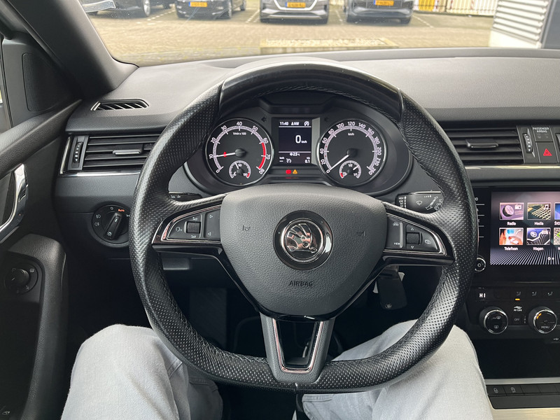 Voor de veiligheid op de weg is het goed dat je je ogen op de weg kunt houden en jouw handen aan het stuur. Want het audiosysteem, met DAB-ontvangst, en het full map navigatiesysteem bedient je vanaf het stuurwiel en met spraakbediening. Gedoe met kabels en stekkers in de sigarettenaansteker is voorbij. De aanwezige draadloze oplaadmogelijkheid voor telefoons zorgt voor wireless recharging van je smartphone. De automatische airconditioning zorgt voor een prettige binnentemperatuur. Met de hulp van de parkeersensoren kost inparkeren en uitparkeren je geen enkele moeite. De elektronische systemen in deze ŠKODA helpen jou actief om comfortabeler te rijden. Een automatisch inschakelbare verlichting en een regensensor houden de omstandigheden onderweg in de gaten. En deze auto heeft ook cruise control, sportstuurwiel, automatisch dimmende buitenspiegels, centrale deurvergrendeling met afstandsbediening, boordcomputer en lederen versnellingspook als standaard uitrusting.