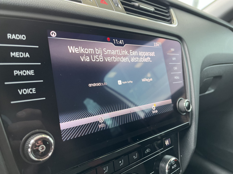 Dankzij de spraaksturing bedien jij verschillende functies zonder jouw handen van het stuur te halen. Het full map navigatiesysteem zorgt ervoor dat je altijd de juiste en snelste route vindt. Bij de luxe van deze auto hoort ook automatische airconditioning. Nieuwe smartphones hebben geen snoeren meer nodig om op te laden. Daarom heeft deze ŠKODA Octavia Combi een draadloze oplaadmogelijkheid voor telefoons waarmee je onderweg simpel en effectief voor een volle accu zorgt. Met de DAB-ontvanger heb jij keuze uit talloze digitale radiozenders met de allerhoogste geluidskwaliteit. Met parkeersensoren achter, regensensor, cruise control, sportstuurwiel, automatisch dimmende buitenspiegels en centrale deurvergrendeling met afstandsbediening is deze auto helemaal compleet.