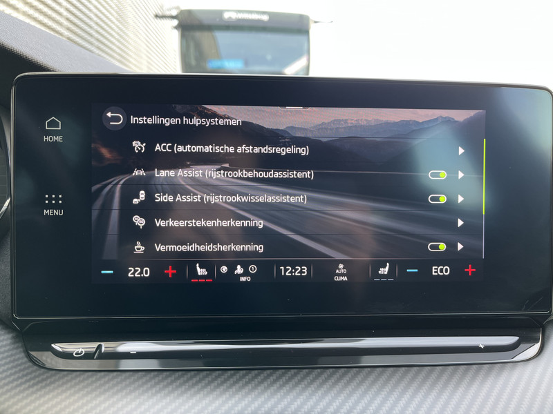 Aan boord van deze ŠKODA houden verschillende geavanceerde systemen voor jou de weg in de gaten. Ze waarschuwen je voor noodsituaties en kunnen in een aantal gevallen ook zelf ingrijpen. Altijd je blik op de weg: met de head-up display hoef je geen moment je ogen te verplaatsen. De info wordt geprojecteerd in het zichtveld voor je. Dat de auto steeds meer taken van de bestuurder overneemt, merk je bijvoorbeeld aan het systeem voor verkeersbord-detectie in deze auto. Ongemerkt buiten de rijstrook raken? Nee hoor, het Lane-keeping systeem waarschuwt en corrigeert. Je bent mede dankzij dodehoekdetectie, forward collision warning system, hill hold functie, autonoom remsysteem en bandenspanningcontrolesysteem steeds veilig onderweg.