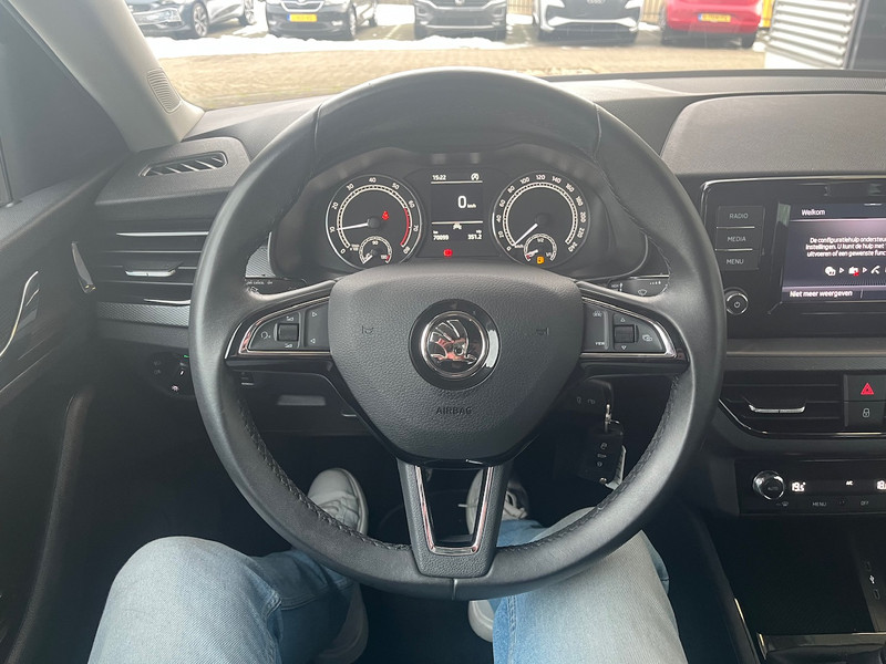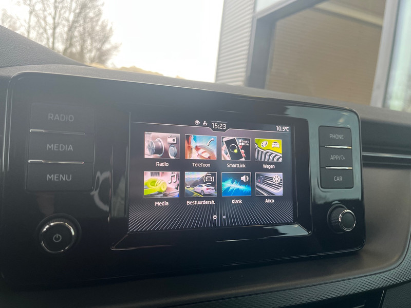 Deze auto gaat met je in gesprek. Hij vertelt met behulp van remote services alles over de status van diverse onderdelen en laat zich desgevraagd ook activeren. Gewoon via je smartphone. Met automatische airconditioning hoef jij alleen de gewenste temperatuur in te stellen. Het systeem doet de rest. Volume aanpassen, andere radiozender? Je bedient het audiosysteem veilig en handig met de functies op het stuur. Parkeersensoren zijn een waardevolle toevoeging aan deze auto. De sensoren waarschuwen tijdens het parkeren en voorkomen schade aan de auto. Cruise control houdt automatisch de ingestelde snelheid vast. Het is een ideaal hulpmiddel om lange ritten comfortabeler te maken. Deze ŠKODA is voorzien van lederen stuur, centrale deurvergrendeling met afstandsbediening en boordcomputer.