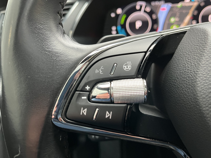 Deze auto is voorzien van een digitaal dashboard waarmee je de cockpit-interface kunt personaliseren. Parkeer en kijk niet om! De achteruitrijcamera doet dat voor je. Adaptive cruise control is een comfortabele en veilige optie. Het systeem reguleert de snelheid en houdt automatisch afstand tot jouw voorligger. Intelligente spraakbediening herkent jouw commando's en voert opdrachten snel en soepel uit. De elektrisch inklapbare trekhaak is dé remedie tegen vuile handen. En blauwe schenen. De uitrusting van deze ŠKODA is met connected drive services, full map navigatiesysteem, WIFI-hotspot, achteropkomend verkeer waarschuwing, automatische airconditioning en draadloos opladen behoorlijk compleet.