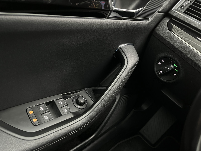 Een cockpit, een informatiecentrum... Wat is de cabine eigenlijk niet? Dankzij het digitale dashboard ben je van alles op de hoogte. Twijfelen hoeveel ruimte je achter de auto hebt? Met de achteruitrijcamera weet je altijd hoeveel centimeter! Adaptive cruise control houdt de ingestelde snelheid vast en houdt afstand tot het voertuig voor je. Naast handmatige bediening kun je belangrijke functies met je stem bedienen dankzij de ingebouwde spraakbediening. Een aanhanger of caravan kan ook mee, dankzij de elektrisch inklapbare trekhaak Met connected drive services, full map navigatiesysteem, WIFI-hotspot, achteropkomend verkeer waarschuwing, automatische airconditioning en draadloos opladen is deze ŠKODA helemaal compleet.