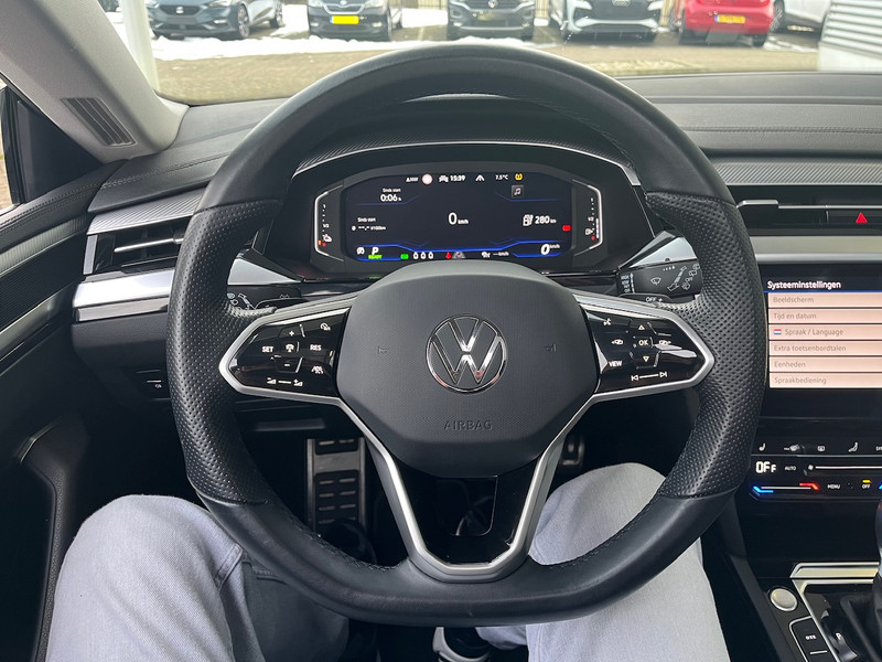 Voor het overzicht tijdens iedere rit is deze Volkswagen Arteon Shooting Brake voorzien van een gemakkelijk afleesbaar digitaal dashboard. Alles vrij achter? De achteruitrijcamera laat het meteen zien. Adaptive cruise control is veilig en comfortabel. De snelheidsregelaar houdt automatisch afstand tot het voertuig dat voor je rijdt. Naast handmatige bediening kun je belangrijke functies met je stem bedienen dankzij de ingebouwde spraakbediening. Dankzij Connected Services heb je overal en altijd je dashboard op zak. Alle belangrijke functies zijn te checken via de app. Natuurlijk behoren full map navigatiesysteem, WIFI-hotspot, automatische airconditioning, schakelpaddles aan het stuur, draadloos opladen en DAB ontvangst ook tot de uitrusting van deze complete auto.