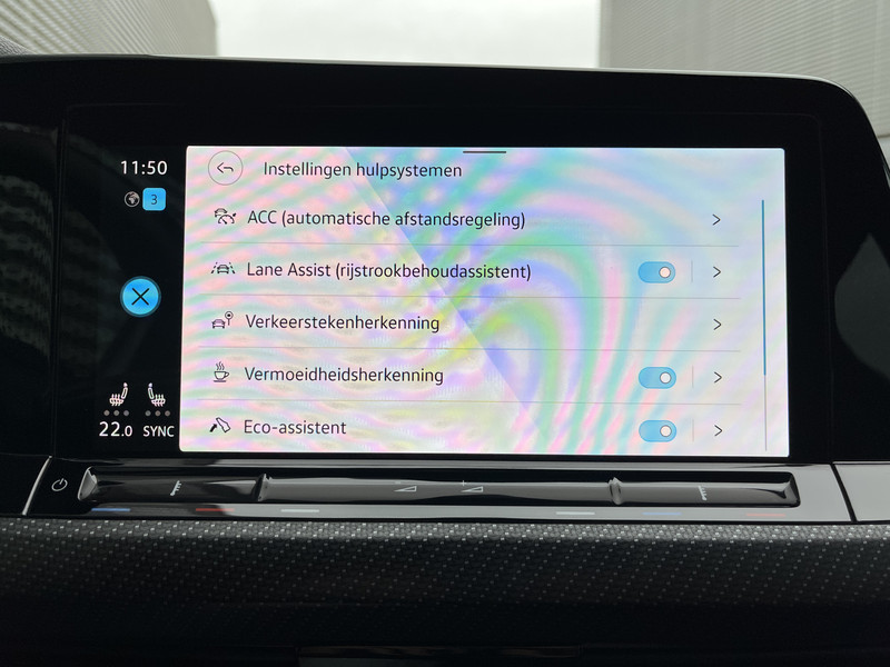 De nieuwste veiligheidssystemen komen in deze Volkswagen Golf samen. In het instrumentarium kun je bovendien de verkeersborden zien die je onderweg tegenkomt. Zo helpt deze Volkswagen jou om veiliger te rijden. Mooi binnen de lijnen van de rijstrook blijven? Het Lane-keeping systeem helpt altijd een handje. Forward collision warning waarschuwt bij een dreigende aanrijding met een voorligger. De veiligheid van deze auto wordt verder verhoogd door hill hold functie, vermoeidheidsherkenning, autonoom remsysteem en bandenspanningcontrolesysteem.
