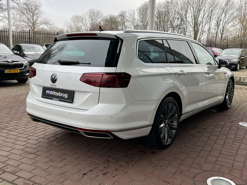 De vormgeving van deze Volkswagen Passat Variant is stijlvol maar ingetogen en dat maakt meteen duidelijk dat jij van deze auto pure kwaliteit mag verwachten. Volkswagen-rijders weten het: een VW is gebouwd voor duurzaamheid en deze Passat Variant ziet er dan ook uit als nieuw. Deze hybride auto heeft een combinatie van een verbrandingsmotor en een elektromotor. Het lederen interieur voegt stijl en allure toe. Doe maar luxe! Neem plaats in de verwarmbare voorstoelen en voel hoe de massagefunctie zorgt voor verfrissende doorbloeding op de lange ritten. Lekker zitten doe jij in de comfortstoelen van deze auto. Van binnen lijkt het allemaal uitermate ruim dankzij de vrije inval van daglicht via het elektrisch bediende glazen panoramadak. De bagageruimte is toegankelijk via een comfortverhogende elektrische achterklep. De geavanceerde matrix LED-verlichting in de koplampen levert maximaal helder zicht en past zich subtiel aan zodra er een tegenligger komt. Zonder lichtkwaliteitsverlies! Tot de uitrusting van deze Volkswagen behoren ook 18 inch lichtmetalen velgen, trailer assistent, donker getint glas achter, in delen neerklapbare achterbank, LED-achterlichten en verstelbare lendensteunen.