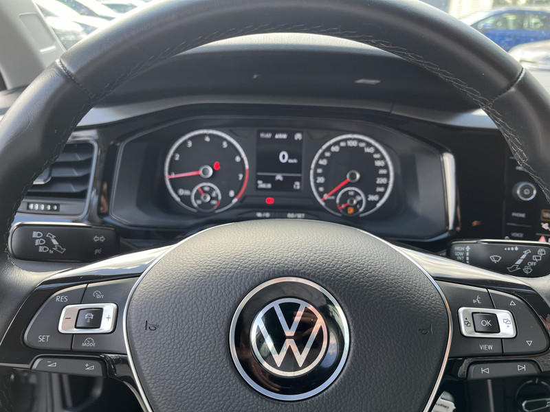 Adaptive cruise control houdt de ingestelde snelheid vast en houdt automatisch afstand tot jouw voorligger. Veilig en comfortabel rijden wordt nog eens versterkt door Connected Services, zodat je diverse vitale functies van de auto altijd kunt checken in de app. Een goede veiligheidsvoorziening is de stuurbediening voor belangrijke functies. De auto is natuurlijk voorzien van een navigatiesysteem en het audio-installatiesysteem biedt glasheldere geluidskwaliteit dankzij DAB-ontvangst. De auto is voorzien van een draadloze telefoonlader, zodat je smartphone tijdens de rit 100% wordt. Deze Volkswagen Polo is voorzien van sensoren aan de achterzijde om een achteropkomend verkeer waarschuwing te geven als de afstand tussen jou en een achterligger te klein is. De uitrusting van deze Volkswagen is met parkeersensoren voor en achter, airconditioning, lederen stuur, centrale deurvergrendeling met afstandsbediening, boordcomputer en lederen versnellingspook behoorlijk compleet.