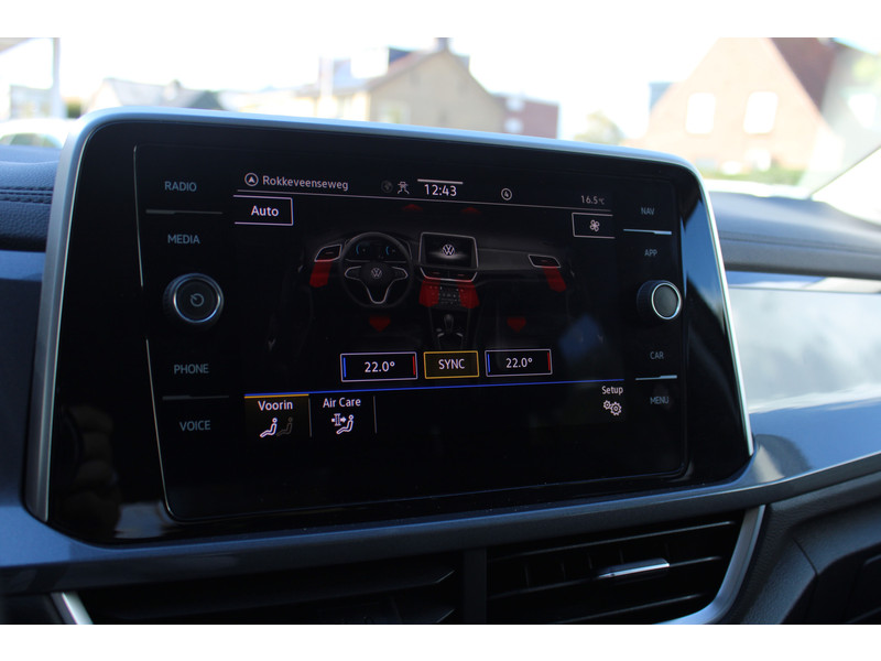 De Volkswagen T-Roc is ook voorzien van ADAS. Deze Advanced Driver Assistence Systems fungeren als extra ogen en oren: ze houden voor jou de weg in de gaten en grijpen in wanneer dat nodig is. Dat de auto steeds meer taken van de bestuurder overneemt, merk je bijvoorbeeld aan het systeem voor verkeersbord-detectie in deze auto. Voorzien van het Lane-keeping systeem. Ofwel: blijf automatisch in je baan. Op een kop-staartbotsing zit niemand te wachten. Daarom is de forward collision warning onderweg constant alert en berekent via een sensor de veilige afstand tot voorliggers. Verder is deze auto uitgerust met hill hold functie, brake assist, vermoeidheidsherkenning en bandenspanningcontrolesysteem.
