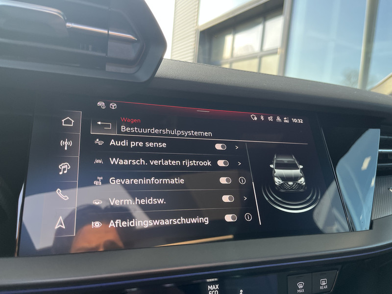 In de Audi A3 Sportback heeft jouw veiligheid en die van jouw omgeving prioriteit. Wat deze auto ook kan, is lezen. Hij 'leest' voor jou de verkeersborden tijdens de rit en attendeert je erop door ze op het dashboard te projecteren. Het Lane-keeping systeem let constant op en waarschuwt of corrigeert als je onoplettend over de lijnen van de rijstrook gaat. Op lange ritten voorkomt de vermoeidheidsassistent dat jouw concentratie afneemt. De veiligheid van deze auto wordt verder verhoogd door hill hold functie, brake assist en bandenspanningcontrolesysteem.