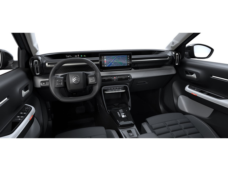Soepel inparkeren gaat gemakkelijker dan je verwacht dankzij de achteruitrijcamera. Je smartphone is tegenwoordig de sleutel tot heel veel. Ook voor deze auto. Remote services, noemen we dat. Waar je ook bent, contact houden is een eitje. Onderweg kun jij veilig genieten van het audio-installatiesysteem met DAB-radio en het full map navigatiesysteem. Want in deze Citroën bedien je ze vanaf het stuurwiel of met jouw stem. Deze Citroën Ë-C3 Aircross is een complete auto anno nu, en dat merk je. Bijvoorbeeld door de aanwezige draadloze oplaadmogelijkheid voor telefoons. De electronic climate control zorgt voor een behaaglijk klimaat in de auto. Deze Citroën is voorzien van regensensor, cruise control, automatisch dimmende binnenspiegel, centrale deurvergrendeling met afstandsbediening en verstelbaar stuur.