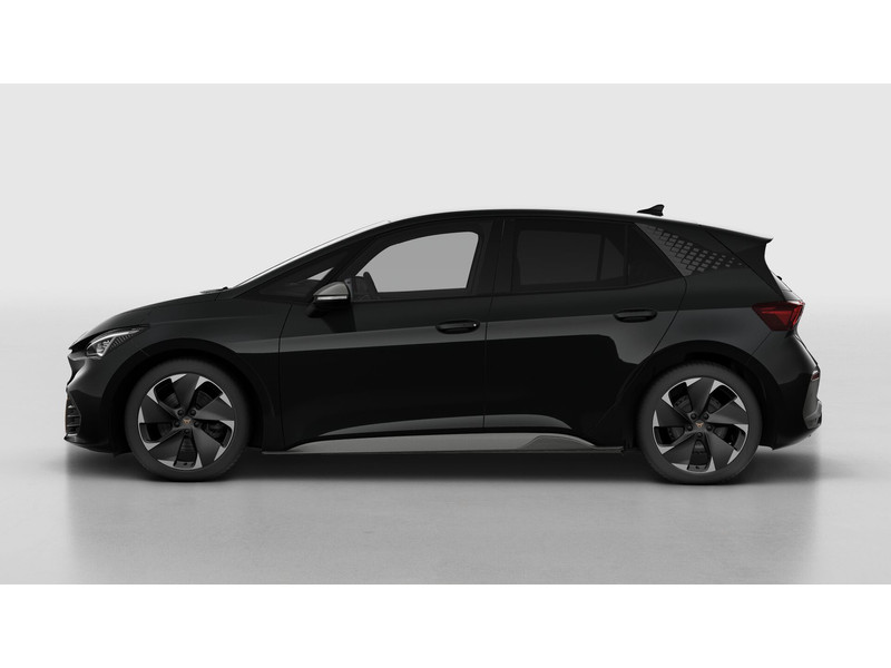 SportonderstelBanden 215/50 R19 (59kWh)Banden 235/40 R20 (77kWh)Buitenspiegels in Dark AluminiumBumpers in carrosseriekleur met Dark Aluminium detailsDonker getinte ruiten achter (vanaf B-stijl)Koplampverlichting Full LED in signature vormLED-achterlichten, doorlopend over gehele breedteMist- en bochten verlichting functie via LED koplampenSlotboutenVelgen 'Hurricane Black', 20 inch lichtmetaal (77kWh)Velgen 'Typhoon Silver', 19 inch lichtmetaal (59kWh)Verlichte portiergrepenWelkomstverlichting "CUPRA" en welkomsceremonie