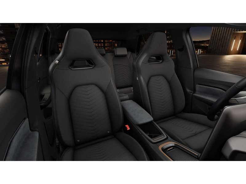 InterieurAutomatisch dimmende binnenspiegelBestuurdersstoel in hoogte verstelbaarInleg deurbekleding in Dinamica (suede look)Kuipstoelen vóór, stof Black Seaqual CottonMattenset CUPRA, uitgevoerd in zwartMiddenarmsteun voor, middenconsole met afsluitbaar opbergvakMultifunctioneel verwarmbaar stuurwiel met CUPRA- & mode-knopRugleuning achterbank in delen neerklapbaarSportpedalen, uitgevoerd in aluminiumStuurwiel in CUPRA design