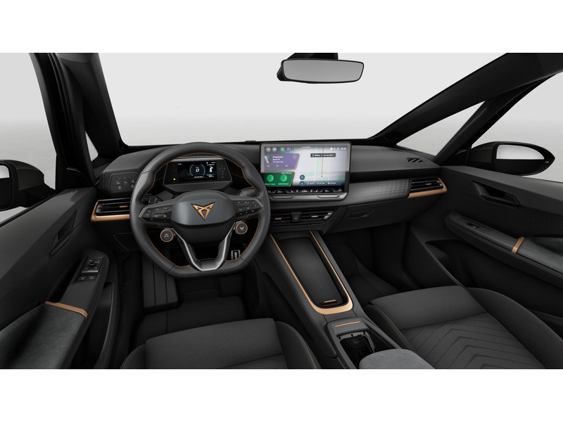 UitrustingAchteruitrijcameraDigitaal instrumentenpaneel (Virtual Cockpit)Parkeersensoren achter & voorRijprofielkeuzeVerwarmbare voorstoelenAC laden tot 11 kW (standaard laadpaal)Afstandscontrolesysteem (Front Assist) met noodremfunctieAirconditioning automatisch met 2-zone-temperatuurregelingApple CarPlay™, Android Auto™BandenspanningscontrolesysteemBluetooth telefoonkoppeling en draadloze lader voor telefoonBuitenspiegels elektrisch verstel-, verwarm- & inklapbaarCentrale airbag, gordijn airbag en zij-airbags voorCentrale vergrendeling met afstandsbediening en Keyless Entry&GoCUPRA CONNECT (aanbod afhankelijk van uitvoering)Digitale radio ontvangst (DAB+)E-Call noodoproepsysteem voor het oproepen van hulpdienstenEHBO-kitElektrische interieurvoorverwarming 6kWElektronisch startblokkering en alarmsysteemGeschikt voor DC snelladen tot 120 kW (59kWh)Geschikt voor DC snelladen tot 170 kW (77kWh)GevarendriehoekGordel reminder, vóór en achterGrootlichtassistent, schakelt automatisch in en uitHoofd airbags voor, uitschakelbaar voor bijrijderKinderzitbevestiging vóór en 2e zitrij (ISOFIX)Laadkabel MODE 3, voor laden via laadpaal of WallboxLane Assist (Rijstrookbehoudassistent)LED slimme sfeerverlichting in voorportieren en dashboardLifehammers, 2 stuksMake-up spiegels in zonneklep, verlichtNavigatiesysteem met 12,9 inch (32,77 cm) touchscreenPredictive Adaptive Cruise ControlProactieve inzittendenbescherming (Pre-Crash)Ruitenwissers met intervalstand en licht- & regensensorSchijfremmen vóórSnelheidsafhankelijke stuurbekrachtigingSnelheidsbegrenzer met adaptive functieSpeakers 7SpraakbedieningTot en met 5 jaar onderhoudsinspecties en APK-keuringUitwijk- en afslagassistentUSB-aansluiting (2x) vóór & (2x) achter, type USB-CVeiligheidshesjeVerkeersbordenherkenningVermoeidheidsherkenning (Attention & drowsiness Assist)