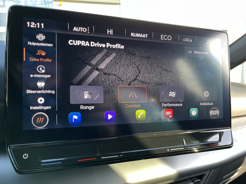 Je rit wordt comfortabel en veilig gemaakt door het digitale dashboard dat alles projecteert wat jij wenst in de digitale wereld van mobiliteit. Onderweg kun jij veilig genieten van het audio-installatiesysteem met DAB-radio. Want in deze CUPRA bedien je het vanaf het stuurwiel of met gesproken opdrachten. De auto is ook uitgevoerd met automatische airconditioning. Met de aanwezige parkeersensoren weet je altijd zeker of het past. Het drukke verkeer eist onderweg al jouw aandacht op. Daarom is het goed dat deze CUPRA is voorzien van diverse systemen die je assisteren tijdens de rit. Een automatisch inschakelbare verlichting neemt het waar als het donker wordt of gaat schemeren, en schakelt dan automatisch de verlichting in. Op dezelfde manier "ziet" de regensensor de eerste spatjes regen en schakelt dan de ruitenwissers in, en als het harder gaat regenen zet hij de ruitenwissers ook in een snellere stand. Je bent in deze CUPRA ook voorzien van cruise control, sportstuurwiel, automatisch dimmende binnenspiegel, isofix-aansluiting, centrale deurvergrendeling met afstandsbediening en boordcomputer.