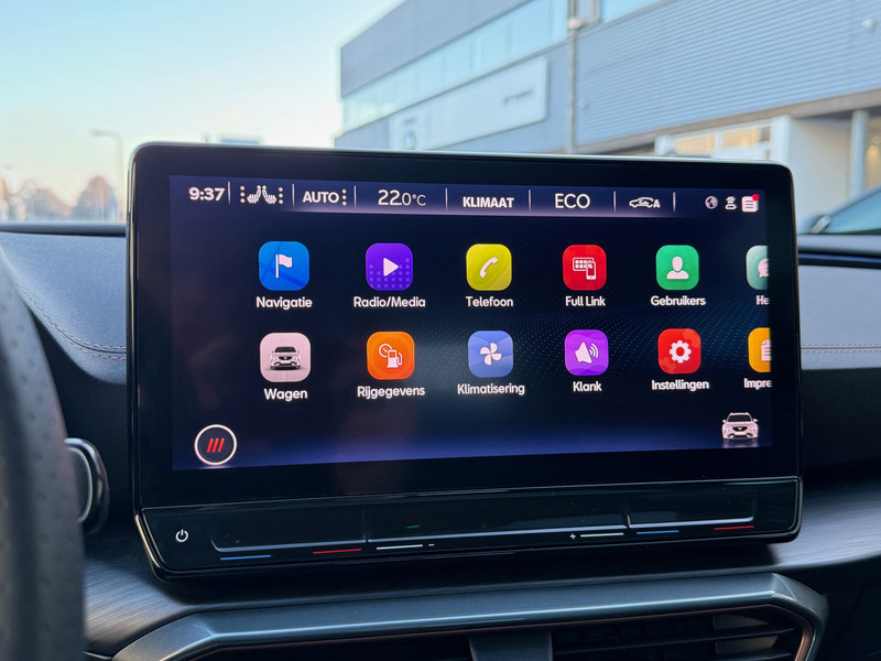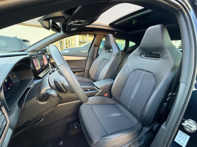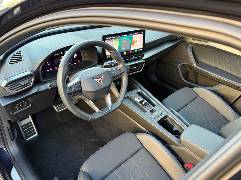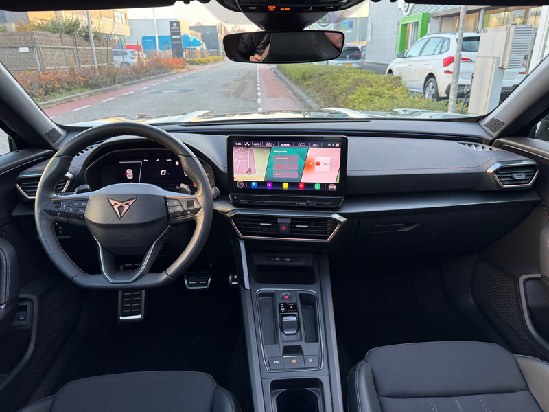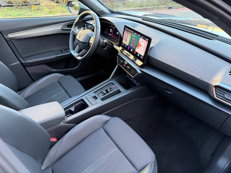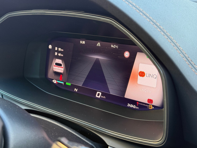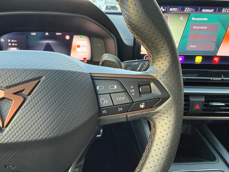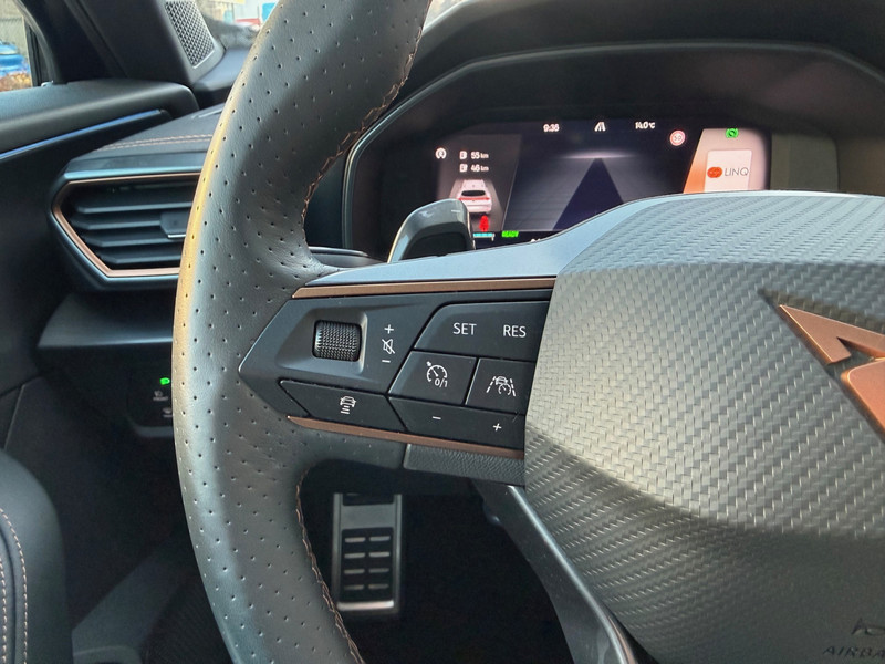 Met het digitale dashboard heb je essentiële info in beeld. Altijd, overal. Soepel inparkeren gaat gemakkelijker dan je verwacht dankzij de achteruitrijcamera. Adaptive cruise control is veilig en comfortabel. De snelheidsregelaar houdt automatisch afstand tot het voertuig dat voor je rijdt. Filerijden? Doodvermoeiend. Daarom helpt de file assistent zo nodig een handje. Door automatisch afstand te houden, en te stoppen als je voorligger stilstaat. Deze auto gaat met je in gesprek. Hij vertelt met behulp van remote services alles over de status van diverse onderdelen en laat zich desgevraagd ook activeren. Gewoon via je smartphone. Met dashboard met spraakbediening, full map navigatiesysteem, achteropkomend verkeer waarschuwing, automatische airconditioning, schakelpaddles aan het stuur en draadloos opladen is deze CUPRA helemaal compleet.