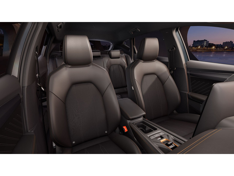 InterieurAutomatisch dimmende binnenspiegelBekleding stof Black SoulBestuurdersstoel en bijrijdersstoel in hoogte verstelbaarDakhemel uitgevoerd in zwartFrames om luchtuitstroomroosters in Copper en Dark AluminiumLendesteunverstelling voorstoelen handmatigMattenset CUPRA, uitgevoerd in zwartMultifunctioneel verwarmbaar stuurwiel met start–en CUPRA–knop en schakelpaddelsSportpedalen, uitgevoerd in aluminiumSupersport stuurwiel in CUPRA design
