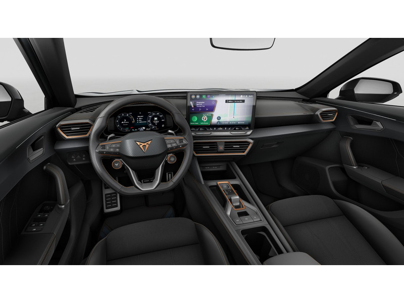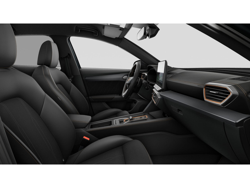InterieurAutomatisch dimmende binnenspiegelBekleding stof Black SoulBestuurdersstoel en bijrijdersstoel in hoogte verstelbaarDakhemel uitgevoerd in zwartFrames om luchtuitstroomroosters in Copper en Dark AluminiumLendesteunverstelling voorstoelen handmatigMattenset CUPRA, uitgevoerd in zwartMultifunctioneel verwarmbaar stuurwiel met start–en CUPRA–knop en schakelpaddelsSportpedalen, uitgevoerd in aluminiumSupersport stuurwiel in CUPRA design