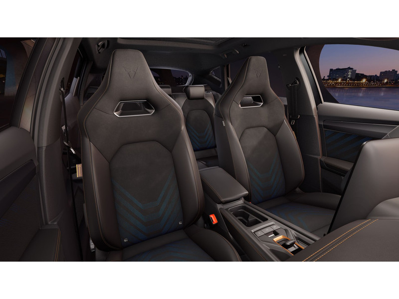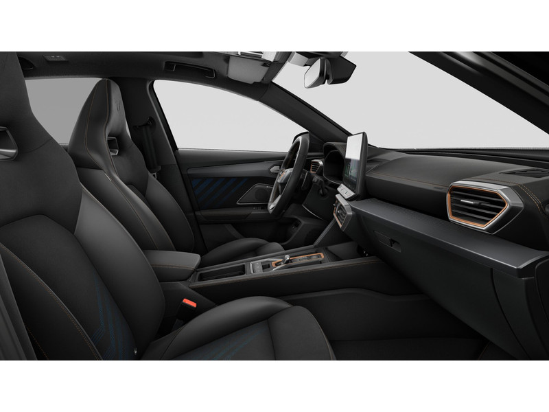 InterieurAutomatisch dimmende binnenspiegelBekleding Dinamica en CUPRA logo in hoofdsteunBestuurdersstoel en bijrijdersstoel in hoogte verstelbaarDakhemel uitgevoerd in zwartFrames om luchtuitstroomroosters in Copper en Dark AluminiumKuipstoelen vóór met geïntegreerde hoofdsteunLendesteunverstelling bestuurdersstoel elektrischMattenset CUPRA, uitgevoerd in zwartMultifunctioneel verwarmbaar stuurwiel met start–en CUPRA–knop en schakelpaddelsSportpedalen, uitgevoerd in aluminiumSupersport stuurwiel in CUPRA design