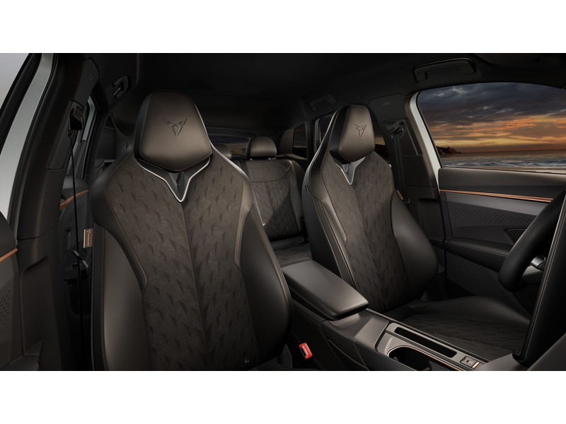 InterieurAutomatisch dimmende binnenspiegelBestuurdersstoel en bijrijdersstoel in hoogte verstelbaarDakhemel uitgevoerd in zwartFrames om luchtuitstroomroosters in Copper en Dark AluminiumKuipstoelen vóór met geïntegreerde hoofdsteunLendesteunverstelling voorstoelen handmatigMattenset CUPRA, uitgevoerd in blauw (Deep Ocean)Moon Light (suede-look)Multifunctioneel verwarmbaar stuurwiel met start–en CUPRA–knop en schakelpaddelsSportpedalen, uitgevoerd in aluminiumSupersport stuurwiel in CUPRA design