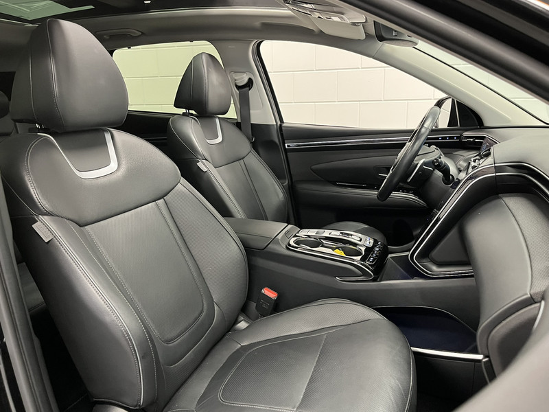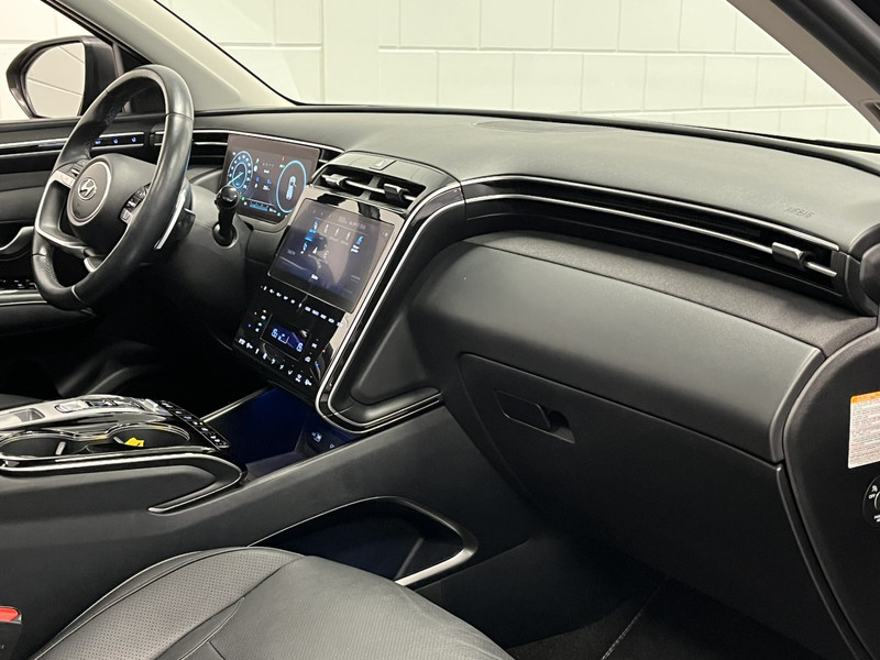 Je zult verrukt zijn van de digitale wereld van mobiliteit; het digitale dashboard projecteert alles wat jij nodig hebt om jouw rit aangenaam en veilig te maken. Met de 360 graden camera kun je elk detail rond de auto zien, waardoor mogelijke schade door verkeerd inschatten van afstanden vermeden wordt. Met adaptive cruise control houdt de auto zelfstandig afstand tot jouw voorligger. Een veiligheidsverhogende optie waarmee je comfortabel onderweg bent. Rijden-stilstaan, rijden-stilstaan. Niks is irritanter en vermoeiender dan filerijden. Daar heeft deze Hyundai Tucson een oplossing voor: de file assistent, die met radarmeting permanent het tempo aanpast op de voorligger. Zelfs als die stopt. Navigatie, onderhoudsstatus, vergrendeling, audio... de mogelijkheden van remote services zijn haast oneindig. Ook deze auto laat zich bedienen en analyseren via je smartphone! En deze auto heeft ook dashboard met spraakbediening, premium audiosysteem, full map navigatiesysteem, kruisend verkeer detectie, automatische airconditioning en schakelpaddles aan het stuur als standaard uitrusting.
