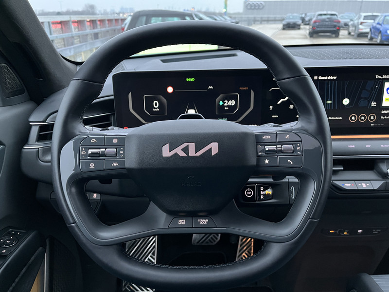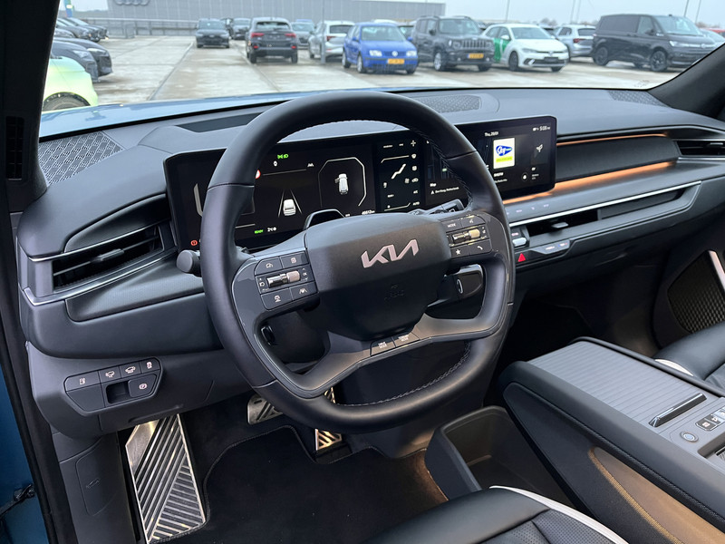 Movement that inspires, is de kreet bij Kia. Zo veel inspiratie dat het merk in de top 3 van favoriete merken staat. De fluisterstille elektromotor zorgt voor pittige rijprestaties zonder uitstoot. Maar wel met fiscaal voordeel! De auto is van het bouwjaar 2024 en is van de eerste eigenaar. De krachtige motor geeft deze Kia uitstekende prestaties. Dankzij het elektrisch bediende glazen panorama dak lijkt het of je altijd met open dak rijdt, zoveel lichtinval heb je. Met één druk op de knop te openen, net als trouwens de elektrisch bedienbare achterklep. Tijdens gure dagen is het prettig zitten in de verwarmbare voorstoelen, die bovendien zijn uitgerust met massagefunctie. Laat ze achterin ook maar genieten: deze Kia EV9 is uitgevoerd met een verwarmde achterbank. De koplampen met matrix LED-verlichting zijn het hoogst haalbare op het gebied van autoverlichting. Ook is de auto voorzien van: 21 inch lichtmetalen velgen, warmtewerend glas, trailer assistent, in delen neerklapbare achterbank, LED-achterlichten en verstelbare lendensteunen.