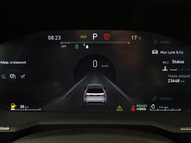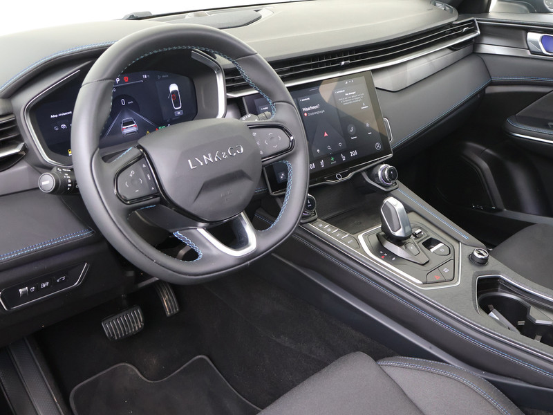 De digitale wereld van mobiliteit verwelkomt jou; op het digitale dashboard wordt alles weergegeven om je rit gemakkelijk en veilig te maken. Omdat je nou eenmaal geen ogen in je achterhoofd hebt, is het altijd lastig om achteruit te rijden zonder brokken te maken. De achteruitrijcamera lost dat probleem op. Met adaptive cruise control houdt de auto zelfstandig afstand tot jouw voorligger. Een veiligheidsverhogende optie waarmee je comfortabel onderweg bent. Filerijden? Doodvermoeiend. Daarom helpt de file assistent zo nodig een handje. Door automatisch afstand te houden, en te stoppen als je voorligger stilstaat. Deze Lynk & Co is voorzien van spraakbediening voor het full map navigatiesysteem en voor het audio-installatiesysteem met DAB-ontvangst. Maar je kunt ook de knoppen op het stuur gebruiken. De uitrusting van deze auto is met WIFI-hotspot, achteropkomend verkeer waarschuwing, automatische airconditioning, draadloos opladen, regensensor en keyless entry behoorlijk compleet.
